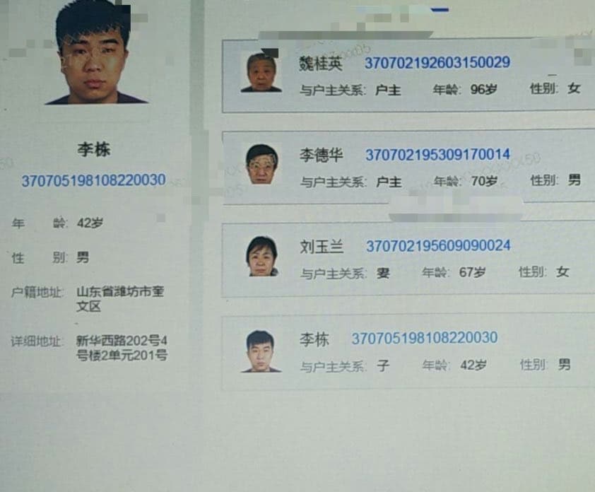 全户即标注有家庭所有成员的那一页,上面的信息有:户主、户籍地址、家庭其他成员的名字、性别、与户主的关系、身份证号、头像。注意,全户里的头像不是高清,如果需要高清图,请再开个户。
